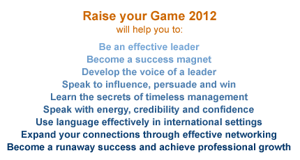 With eight keynote speakers and two special panel sessions, delegates attending Raise your Game 2012 will learn many great ideas and techniques to achieve greater success at work and in your daily life.